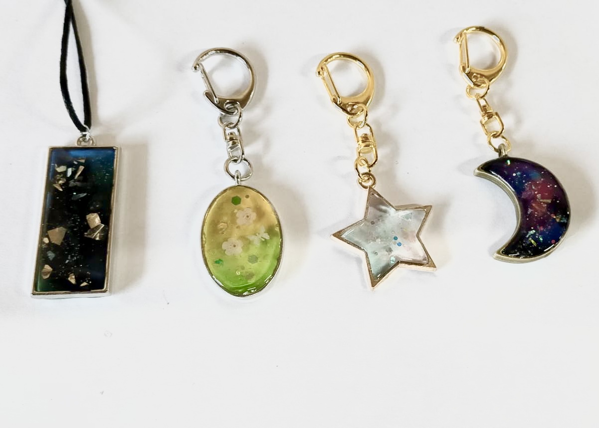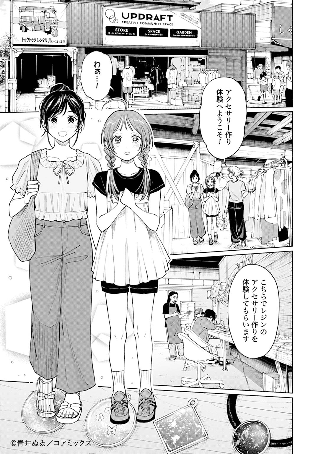 このワークショップでは、作中で主人公・まひるたちが当店を訪れた際に作ったレジンアクセサリーを実際に制作できます。